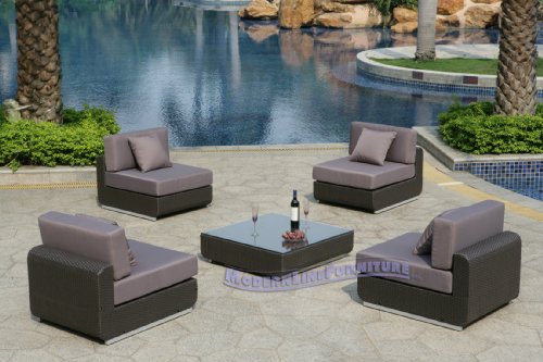 Modern Furniture All-Weather Collection: Set of Four Grey Chairs and Glass top Coffee Table Review