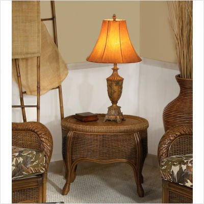 101-1333-PEC-ET Features: -Traditional indoor rattan and wicker end table with glass. -Finished in antique color. -Durable, yet elegant construction. -Constructed of commercial quality rattan poles. -Fully assembled. -Woven leather bindings. -Lampakanay is a twisted rope like material used as an accent. -Overall dimensions: 22'' H x 27'' W x 22'' D. Read more...