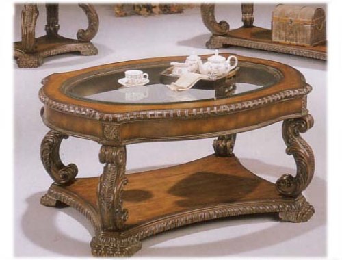 Free Shipping HAND CARVED ANTIQUE FINISH COFFE TABLE WITH GLASS INLAY @ Amazon.com