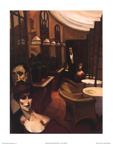 Title: Terrace Rendevous. Artist: Juarez Machado. Image Size: 9.03in. x 11.96in. Paper Size: 11.00in. x 14.00in. HIGH QUALITY CANVAS Print With Light Added BRUSHSTROKES
