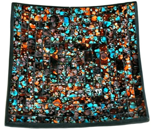 Free Shipping Mosaic Glass Tray, One of a Kind - Turquoise Rain Theme - 7.5" X 7.5" @ Amazon.com