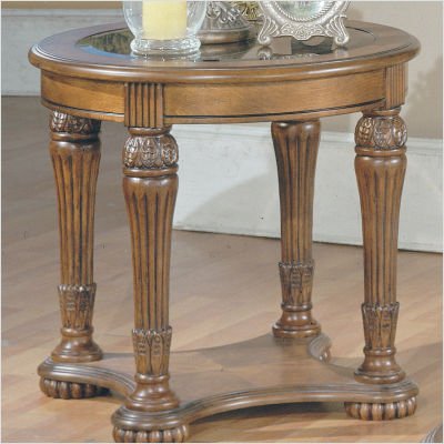 TAB18-01 Features: -End table. -Warm pecan finish. -Italian classic style. -Glass inserts. -Lower shelf. Read more...