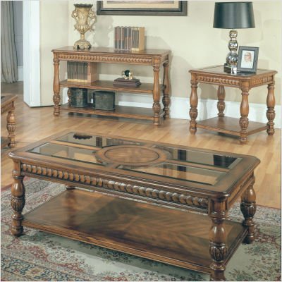 TAB20-00 Set Features: -Set includes rectangle cocktail table and end table. -Poplar finish. -Beveled bronze glass inserts. -Lower shelves. -Optional console table has open shelves. Read more...