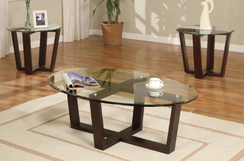 3 Pc. Set Coffee Table with 2 End Tables 8mm Beveled Glass in Espresso Finish Review
