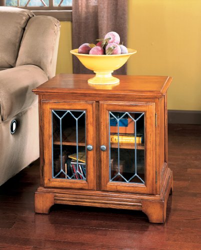 Rich with traditional beauty and sophisticated style, the "Drake Estates" accent table collection features furniture that can transform any home. A rich warm finish coats the select oak veneers and hardwood solids creating a rich traditional style that is beautifully accented with simulated leaded glass door inserts and rustic styled hardware. The castered coffee table features a unique lift-top design that fits perfectly within any active living environment. Decorate your home with the traditional look of the "Drake Estates" accent table collection. Read more...