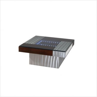 IFT3616B Features: -Cocktail table. -Jon Gilmore collection. -Wood and aluminum construction. -Contemporary style. -Square shaped. -Glass table top. -Battery operated. -Hand crafted and hand finished. -Two way mirror to create infinity effect. -Three D batteries not included. -Assembly required. Read more...