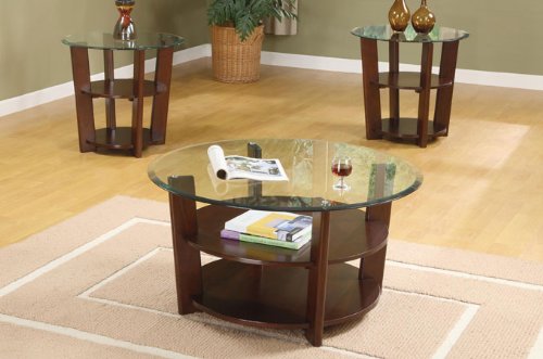 3-pcs Wooden Coffee Table with 8mm Beveled Glass and 2 End Table with Glass Top in Brown Finish #PD F31108 Review