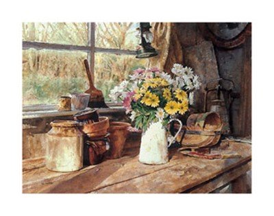 Title: Chrysanthemums. Artist: Neil Faulkner. Image Size: 19.95in. x 15.72in. Paper Size: 24.00in. x 20.00in. Beautiful MUSEUM WRAP CANVAS Print with Added BRUSHSTROKES