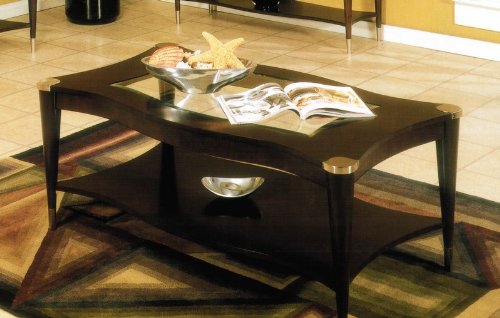 Free Shipping Cocktail Coffee Table with Glass Inlay Top in Espresso Finish @ Amazon.com