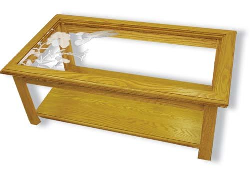 Oak Glass Top Coffee Table With Hummingbird Etched Glass - Hummingbird Coffee Table Furniture - Unique Hummingbird Gift Ideas - Fully Assembled - 39" x 22" x 15" high Review