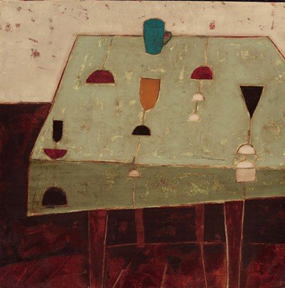 Title: Table With Blue Cup. Artist: Jo Oakley. Image Size: 20.00in. x 20.00in. Paper Size: 20.00in. x 20.00in. Beautiful MUSEUM WRAP CANVAS Print with Added BRUSHSTROKES