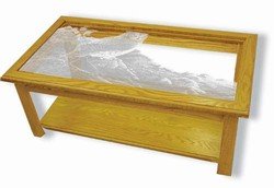 Great Horned Owl by Donald Blakney. Night falls. The forest sleeps. All you hear is the rustle of wind—and the haunting call of the owl. Wise, inscrutible, the owl keeps watch over the forest through the night. Capture this mysterious creature in your home, with the highest quality etched glass decor available anywhere.Beautiful handcrafted etched glass oak coffee table. Hand-stained and double-lacquer finish with a beautiful Early American stain enhances their natural beauty. Each piece captures the depth and shading of the original artwork. Glass table tops use double-thick 1/4 inch glass to give you maximum durability. Your tables come fully assembled. No need for tools or complicated plans. Just set the glass in its place on top and your table is ready for you—and everyone who sees it—to enjoy. Read more...